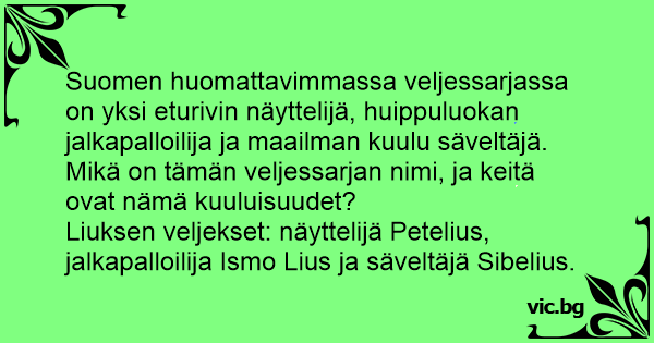 Liuksen veljekset: näyttelijä Petelius, jalkapalloilija Ismo Lius ja säveltäjä Sibelius.