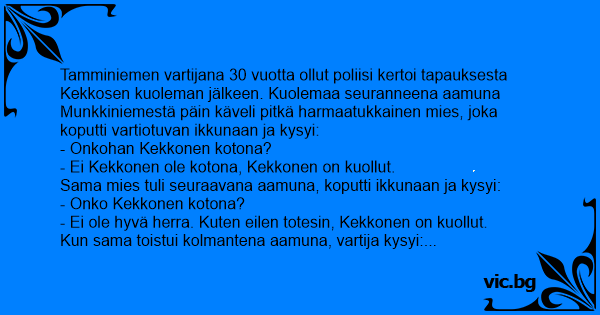 - Olen jo kaksi kertaa sanonut, että Kekkonen on kuollut. Miksi käytte siitä huolimatta jatkuvasti täällä kyselemässä?
