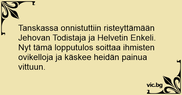 Tanskassa onnistuttiin risteyttämään Jehovan Todistaja ja Helvetin Enkeli. Nyt tämä lopputulos soittaa ihmisten ovikelloja ja käskee heidän painua vittuun.