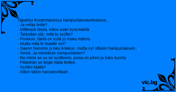 Tapahtui Kuopiolaisessa hampurilaisravintolassa...