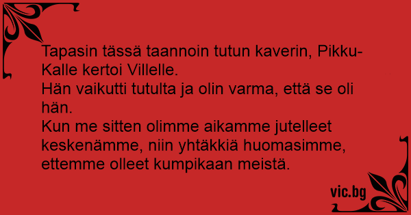 Tapasin tässä taannoin tutun kaverin, Pikku-Kalle kertoi Villelle.