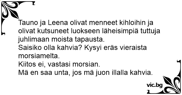 Kiitos ei, vastasi morsian.