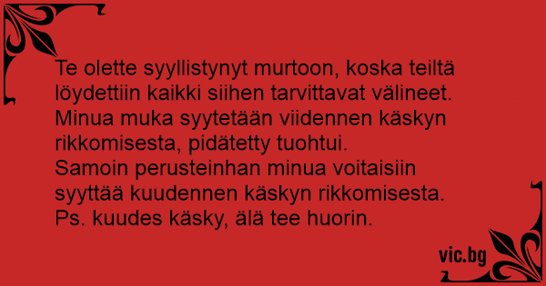 Samoin perusteinhan minua voitaisiin syyttää kuudennen käskyn rikkomisesta.