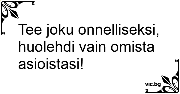 Tee joku onnelliseksi, huolehdi vain omista asioistasi!