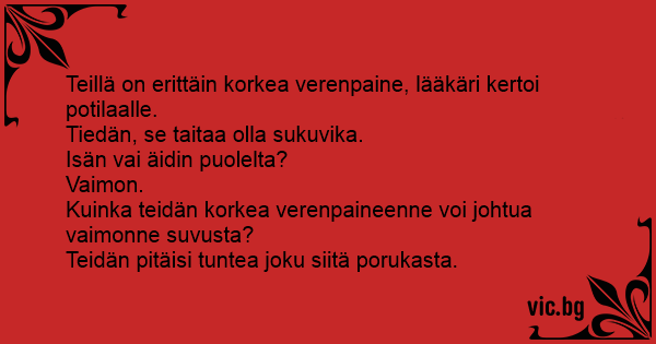 Kuinka teidän korkea verenpaineenne voi johtua vaimonne suvusta?