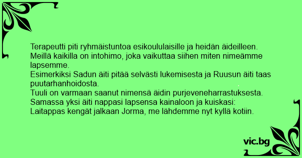 Esimerkiksi Sadun äiti pitää selvästi lukemisesta ja Ruusun äiti taas puutarhanhoidosta.