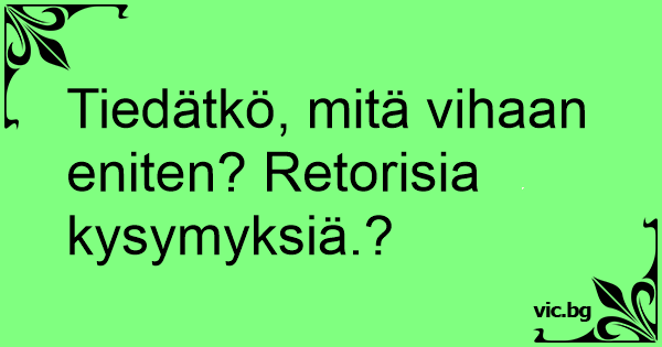 Tiedätkö, mitä vihaan eniten? Retorisia kysymyksiä.?