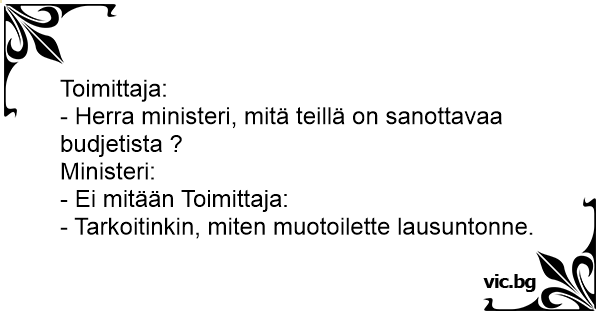 - Herra ministeri, mitä teillä on sanottavaa budjetista ?