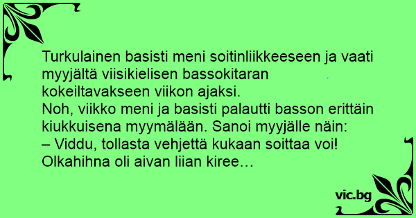 Turkulainen basisti meni soitinliikkeeseen ja vaati myyjältä viisikielisen bassokitaran kokeiltavakseen viikon ajaksi.