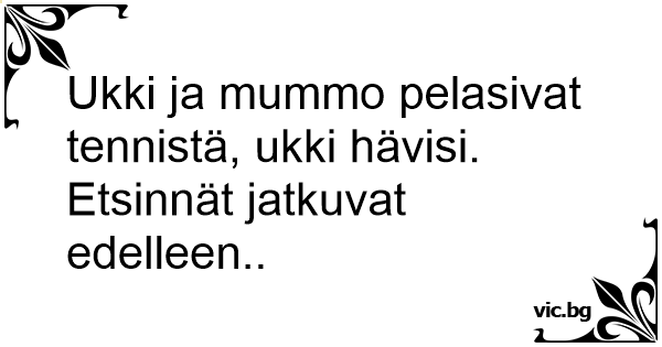Ukki ja mummo pelasivat tennistä, ukki hävisi.