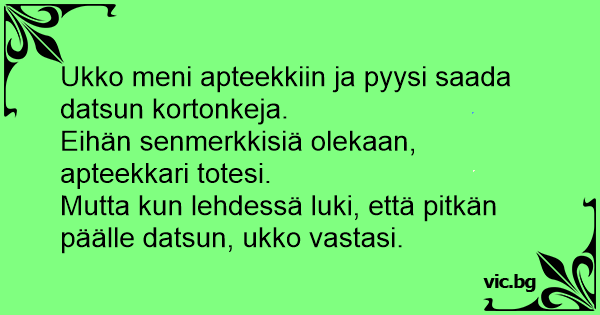 Ukko meni apteekkiin ja pyysi saada datsun kortonkeja.