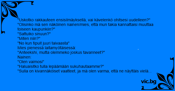 "Uskotko rakkauteen ensisilmäyksellä, vai kävelenkö ohitsesi uudelleen?"