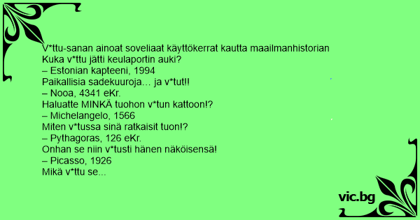 V*ttu-sanan ainoat soveliaat käyttökerrat kautta maailmanhistorian