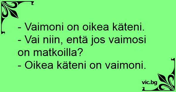 - Vai niin, entä jos vaimosi on matkoilla?