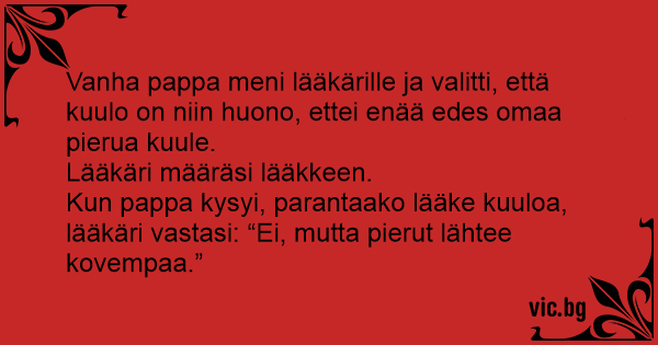 Kun pappa kysyi, parantaako lääke kuuloa, lääkäri vastasi: “Ei, mutta pierut lähtee kovempaa.”