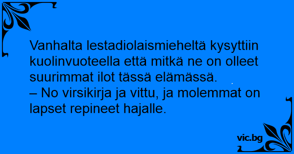 Vanhalta lestadiolaismieheltä kysyttiin kuolinvuoteella että mitkä ne on olleet suurimmat ilot tässä elämässä.