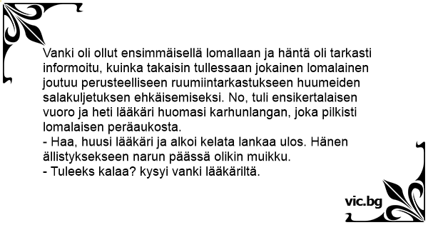 - Tuleeks kalaa? kysyi vanki lääkäriltä.