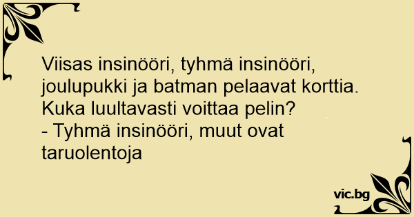 Viisas insinööri, tyhmä insinööri, joulupukki ja batman pelaavat korttia. Kuka luultavasti voittaa pelin?