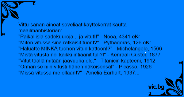 Viттu-sanan ainoat soveliaat käyttökerrat kautta maailmanhistorian:
