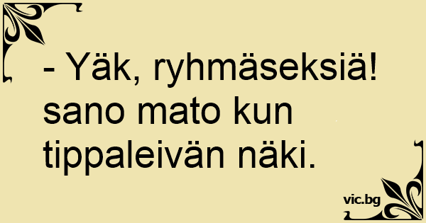 - Yäk, ryhmäseksiä! sano mato kun tippaleivän näki.