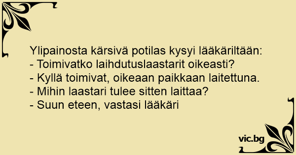 Ylipainosta kärsivä potilas kysyi lääkäriltään: