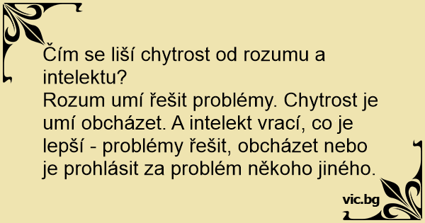 Rozum umí řešit problémy. Chytrost je umí obcházet. A intelekt vrací, co je lepší - problémy řešit, obcházet nebo je prohlásit za problém někoho jiného.