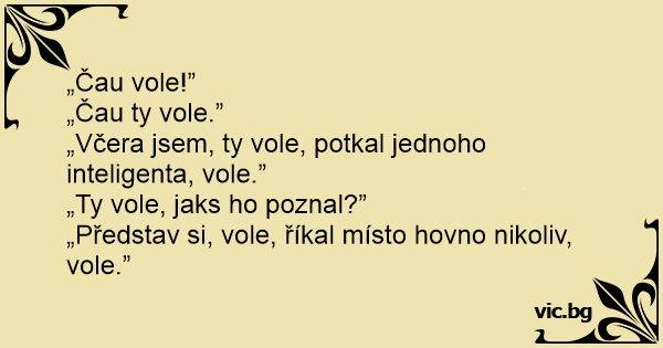 „Včera jsem, ty vole, potkal jednoho inteligenta, vole.”