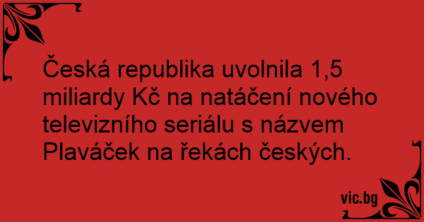 Česká republika uvolnila 1,5 miliardy Kč na natáčení nového televizního seriálu s názvem Plaváček na řekách českých.