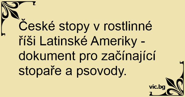 České stopy v rostlinné říši Latinské Ameriky - dokument pro začínající stopaře a psovody.