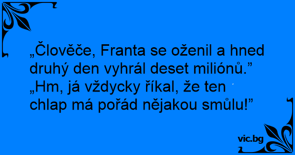 „Člověče, Franta se oženil a hned druhý den vyhrál deset miliónů.”