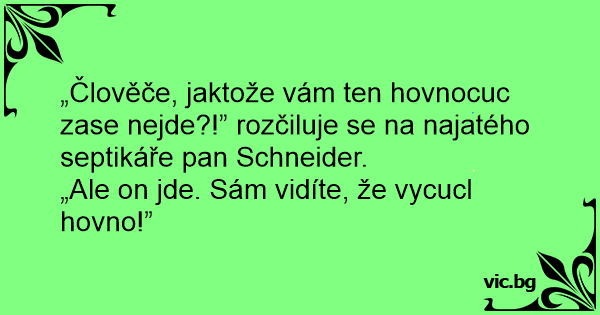 „Člověče, jaktože vám ten hovnocuc zase nejde?!” rozčiluje se na najatého septikáře pan Schneider.