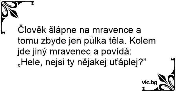 Člověk šlápne na mravence a tomu zbyde jen půlka těla. Kolem jde jiný mravenec a povídá: „Hele, nejsi ty nějakej uťáplej?”