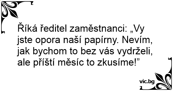Říká ředitel zaměstnanci: „Vy jste opora naší papírny. Nevím, jak bychom to bez vás vydrželi, ale příští měsíc to zkusíme!”