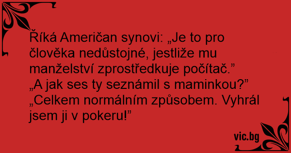 Říká Američan synovi: „Je to pro člověka nedůstojné, jestliže mu manželství zprostředkuje počítač.”