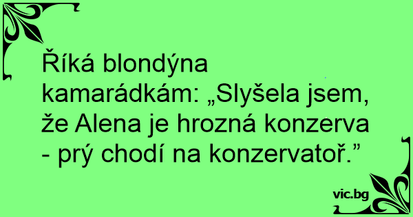 Říká blondýna kamarádkám: „Slyšela jsem, že Alena je hrozná konzerva - prý chodí na konzervatoř.”