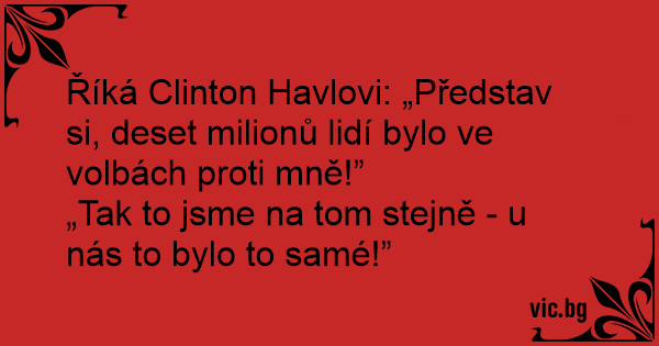 Říká Clinton Havlovi: „Představ si, deset milionů lidí bylo ve volbách proti mně!”