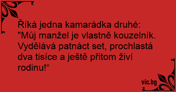 "Můj manžel je vlastně kouzelník. Vydělává patnáct set, prochlastá dva tisíce a ještě přitom živí rodinu!“