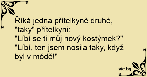 Říká jedna přítelkyně druhé, "taky" přítelkyni: