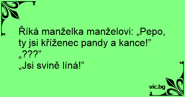 Říká manželka manželovi: „Pepo, ty jsi kříženec pandy a kance!”