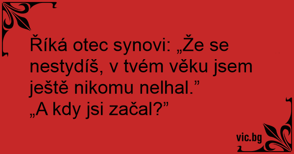 Říká otec synovi: „Že se nestydíš, v tvém věku jsem ještě nikomu nelhal.”