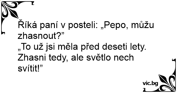 Říká paní v posteli: „Pepo, můžu zhasnout?”