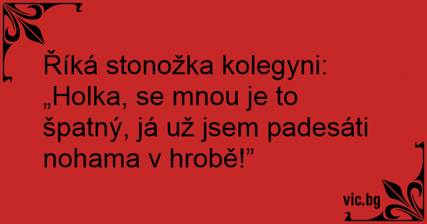 Říká stonožka kolegyni: „Holka, se mnou je to špatný, já už jsem padesáti nohama v hrobě!”