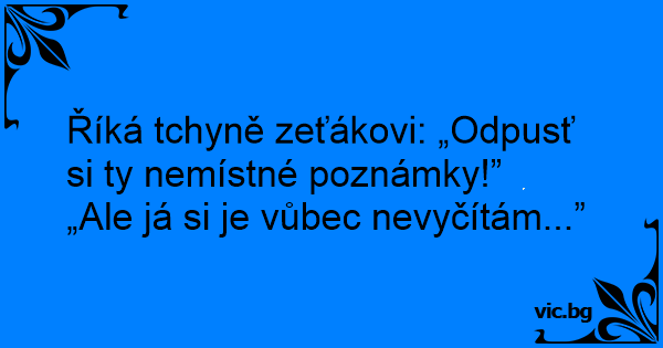 Říká tchyně zeťákovi: „Odpusť si ty nemístné poznámky!”