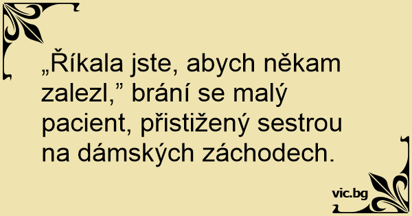„Říkala jste, abych někam zalezl,” brání se malý pacient, přistižený sestrou na dámských záchodech.