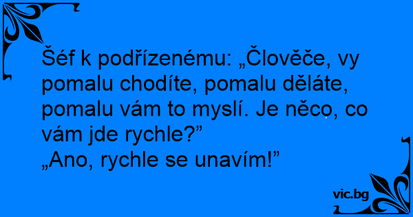 Šéf k podřízenému: „Člověče, vy pomalu chodíte, pomalu děláte, pomalu vám to myslí. Je něco, co vám jde rychle?”