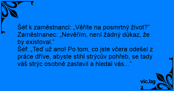 Šéf k zaměstnanci: „Věříte na posmrtný život?”