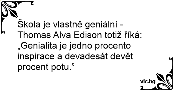 Škola je vlastně geniální - Thomas Alva Edison totiž říká: „Genialita je jedno procento inspirace a devadesát devět procent potu.”