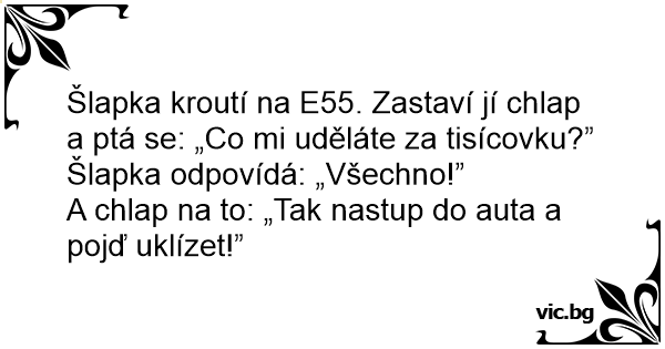 Šlapka kroutí na E55. Zastaví jí chlap a ptá se: „Co mi uděláte za tisícovku?”