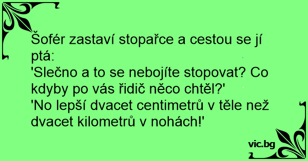 Šofér zastaví stopařce a cestou se jí ptá: