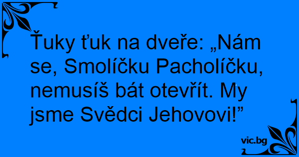 Ťuky ťuk na dveře: „Nám se, Smolíčku Pacholíčku, nemusíš bát otevřít. My jsme Svědci Jehovovi!”